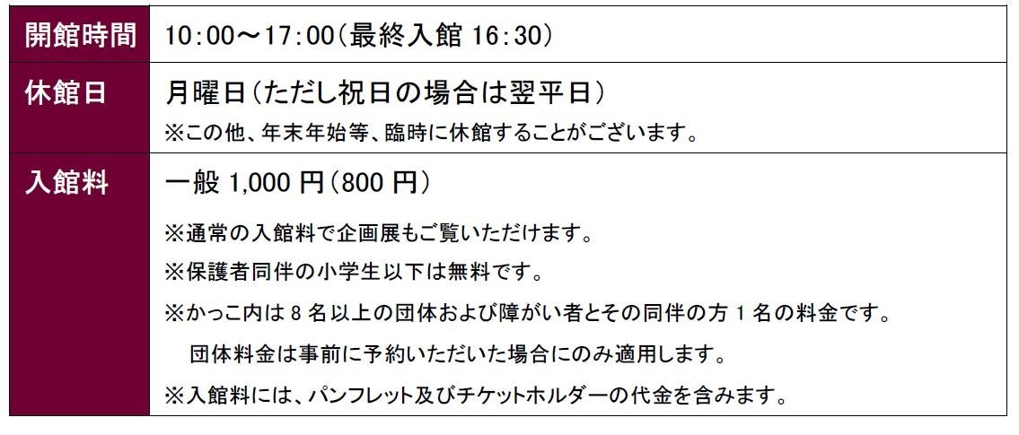 今後の新型コロナウイルス感染症の状況により、会期を変更する場合がございます。最新の情報や当館の感染予防対策については、WEBサイトをご確認ください。