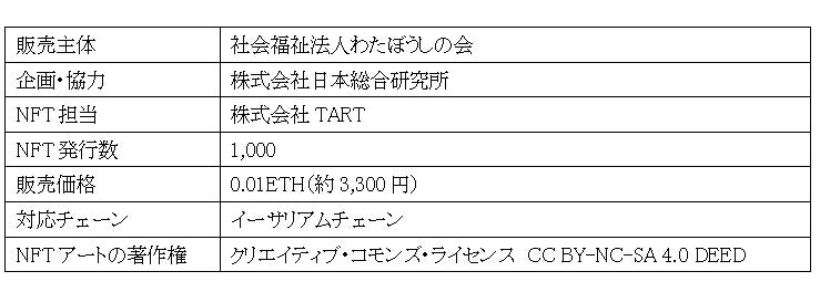 また、本プロジェクトの取り組みの一環として、わたぼうしの会は、株式会社TART(本社:東京都品川区、代表取締役:髙瀬俊明、以下「TART」)の技術サポートの下、NFTアートコレクション「グッドジョブさん」の販売を2024年2月6日から行います。