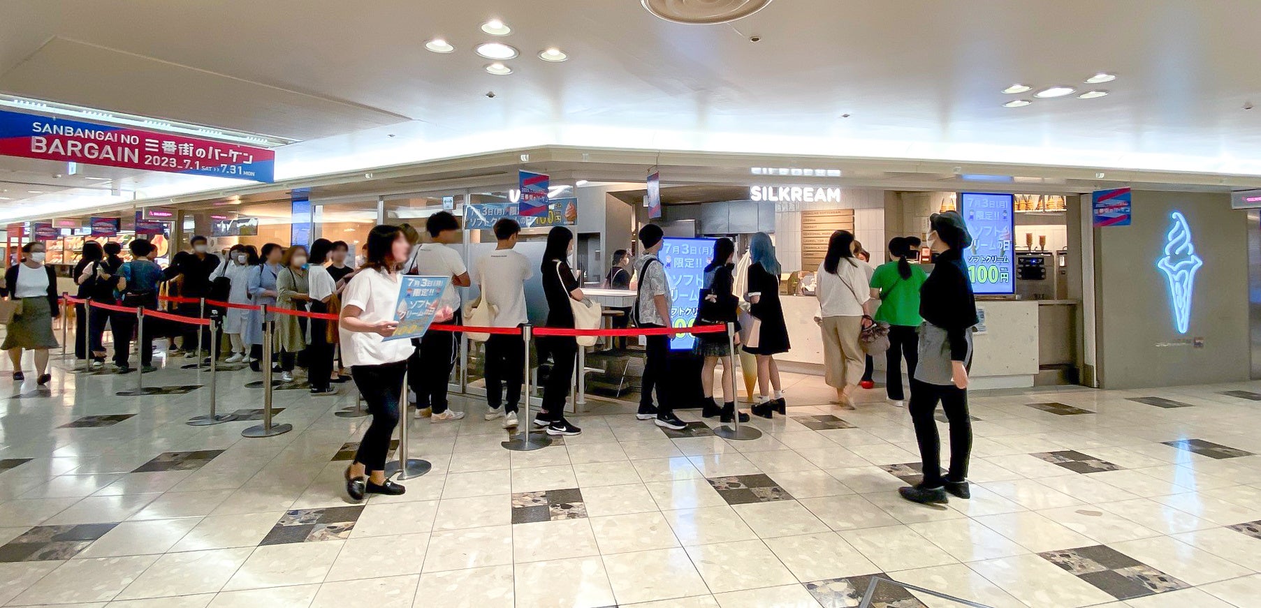 ソフトクリームの日を記念して、日世直営店シルクレーム阪急三番街店にて。