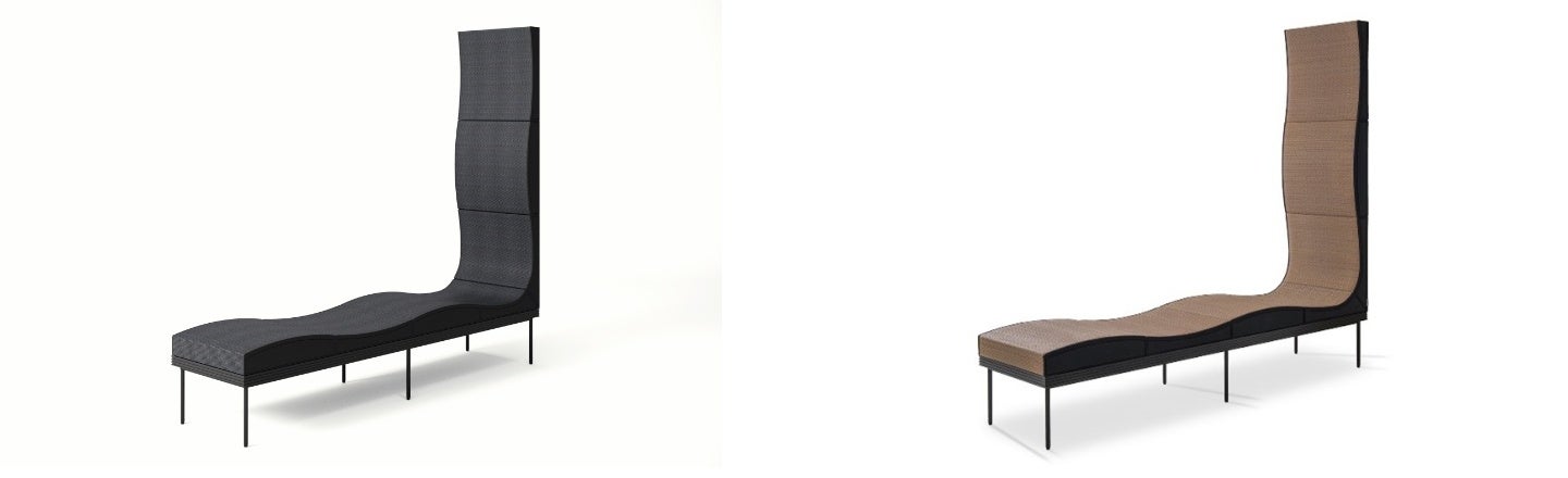 内部繊維の密度が⾼く、リラックス効果はもちろん湿度調整、空気浄化、悪臭物質の吸着、防汚性、難燃性など、多くの優れた機能を持っています。従来、床や座布団など平面的に用いられてきた、い草の美しさをより引き出し、現代のライフスタイルに合うデザインを提案しています。