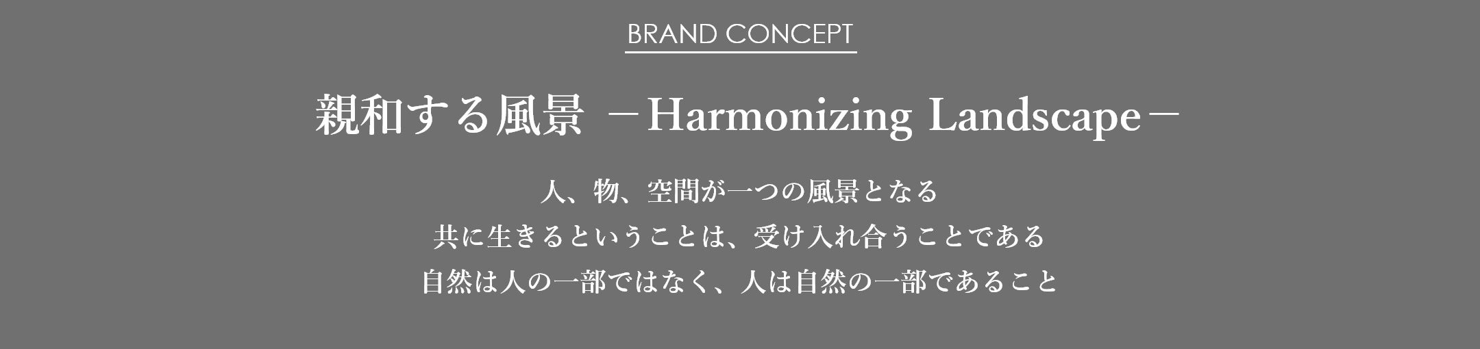 2022年よりデザインコレクティブ「CANUCH」木下陽介氏を迎えリブランディングを行い、新たなブランドコンセプトに【親和する⾵景 〜Harmonizing Landscape〜】 を設定。日本の伝統的な生活スタイルの中で醸成された、人、物、空間との調和が1つの風景となり、互いを活かし共存する⽇本独⾃の⾃然観を持つブランドとして、今年6月にイタリア・ミラノで開催されたMilano Design Week 2022で発表し、好評を頂きました。