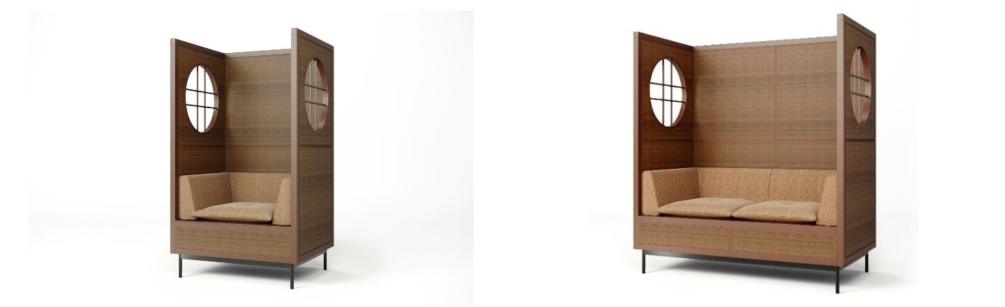 三方の囲いがパーティションとなり、静かにリラックスできる個のスペースをつくりだします。