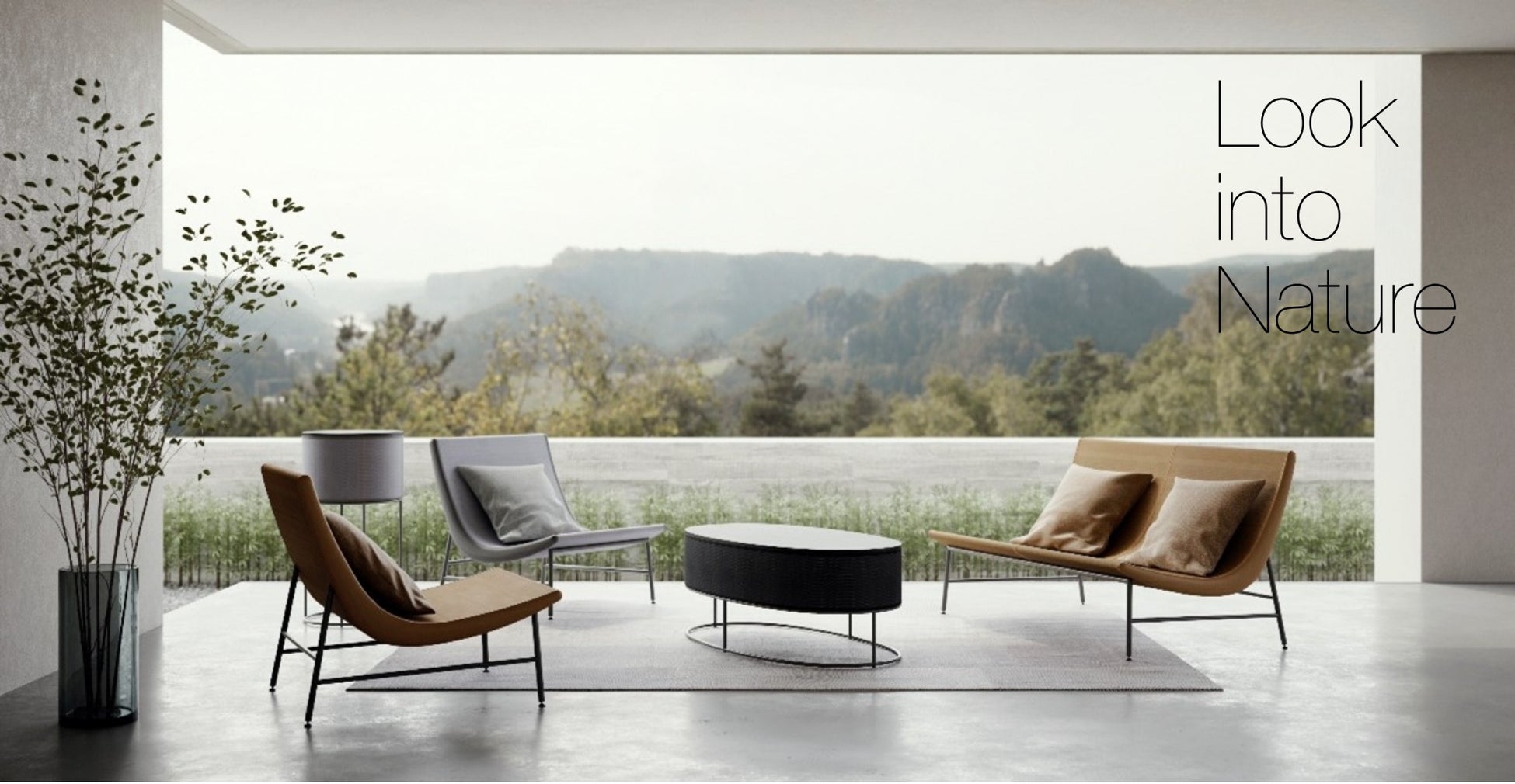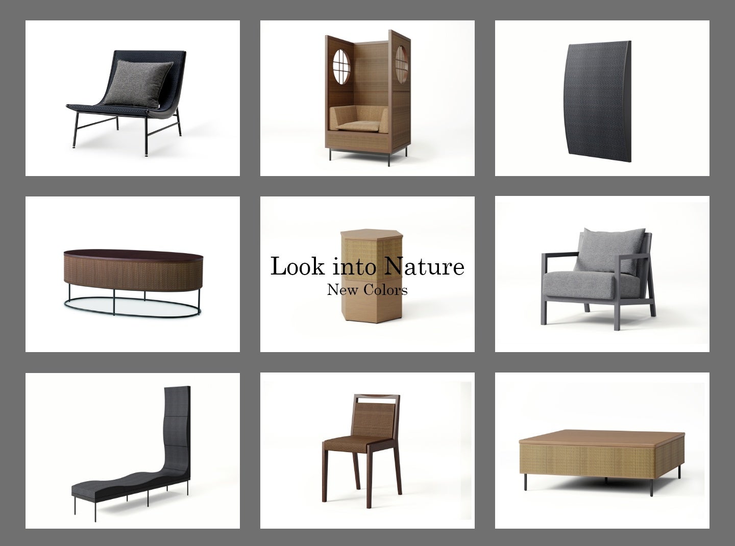 今一度、この自然観に着目し、環境との関わり合いの中で、自らの行動や所作も風景の一部となる物の在り方を、《Look into Nature》という言葉によせて設定しています。また、”い草”のカラートーンと編み⽅も、より空間との調和が図れるよう刷新致しました。