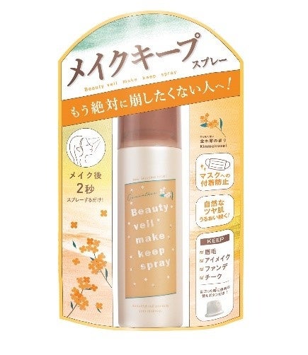 ビューティヴェールブランドの中で、特に人気があった「金木犀の香り」が今年も帰ってきました。メイクの後に2秒スプレーするだけで、マスクによる摩擦やムレ、汗や水、乾燥によるメイク崩れを防ぎます。メイク崩れを防ぐだけでなく、美容液成分96%(水を含む)配合でキメの整ったうるおい肌を長時間(※1)キープします。マスク生活に終わりを告げようとしている中で、10月中旬まで続くと言われている残暑中でのメイクキープスプレーは、誰でも簡単に使用できるメイク崩れ防止のアイテムです。《メイクも自信も崩さない!》暑さでメイク崩れが気になる今の時代に欠かせないアイテムです。