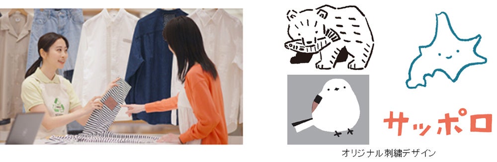2022年10月から、ユニクロ世田谷千歳台店(東京都)で開始した、服の新たな未来を追求するスペース「RE.UNIQLO STUDIO」では、お客様に愛着のある服を大切に着続けていただくためのリペアやリメイクサービスを提供しています。今回、北海道では初めてユニクロ東急百貨店さっぽろ店にも導入します。Tシャツに開いてしまった穴をかがったり、ボタンの付け直しなど傷んだ箇所を丁寧に修理するほか、ご愛用いただいているジーンズやシャツ、バッグなどに、刺繍を施してカスタマイズするサービスを提供します。また、ユニクロ東急百貨店さっぽろ店だけの取り組みとして、イラストレーターの高旗将雄さんがデザインした北海道をモチーフにしたオリジナル刺繍も提供します。