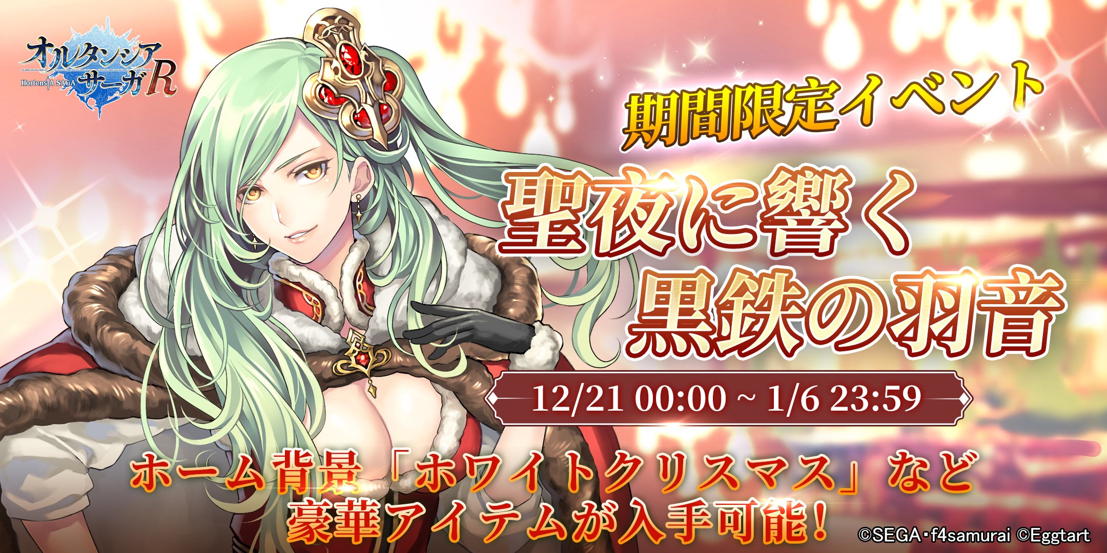 好評配信中のiOS/Android向け3Dアニメ×戦記RPGゲーム『オルタンシア・サーガR(以下「オルサガR」)』は、12月21日(火)より、クリスマスイベント“聖夜に響く黒鉄の羽音”を開始いたしました。