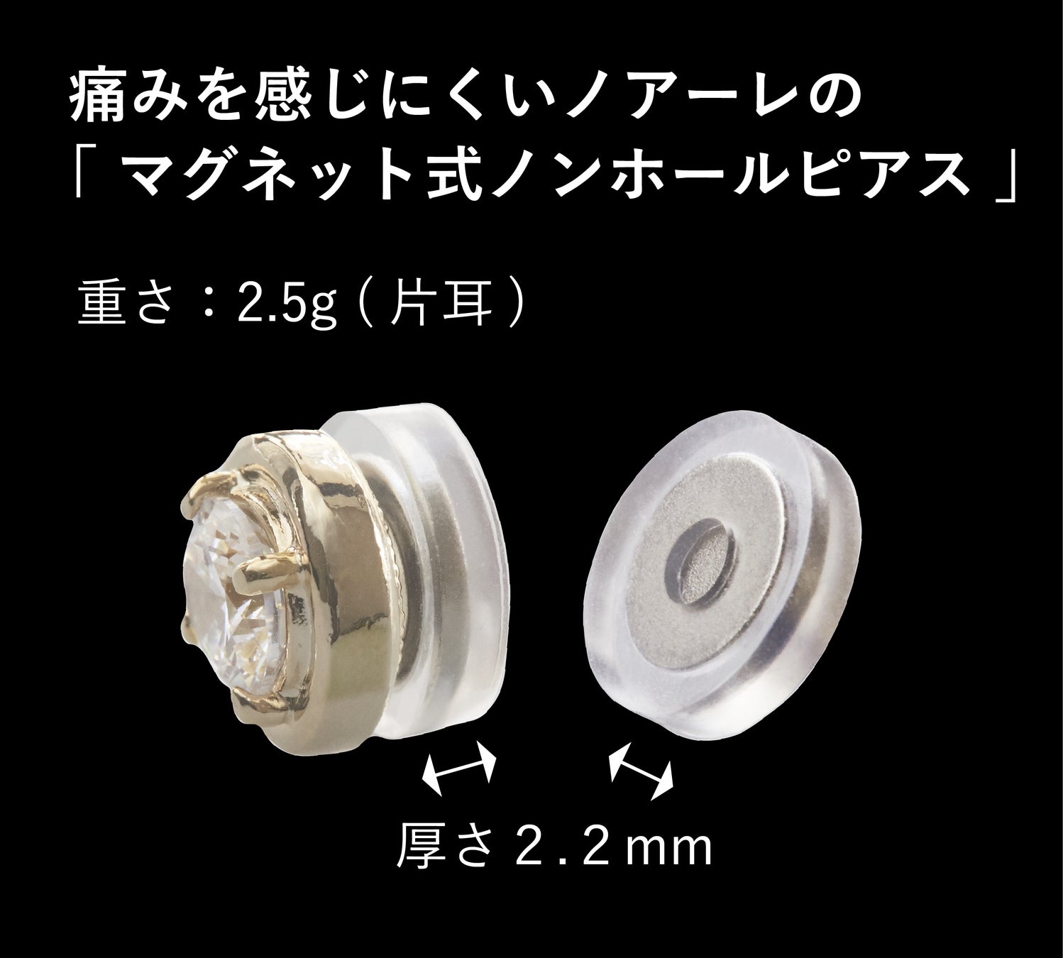 金属が肌に触れないマグネット式ノンホールピアス。