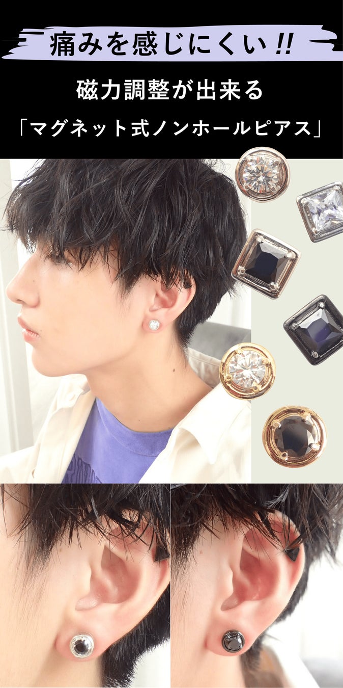 ピアス見えを叶え、肌にも優しいノンホールピアスです。痛みを感じない様に、磁力も調整できるオリジナル金具です。
