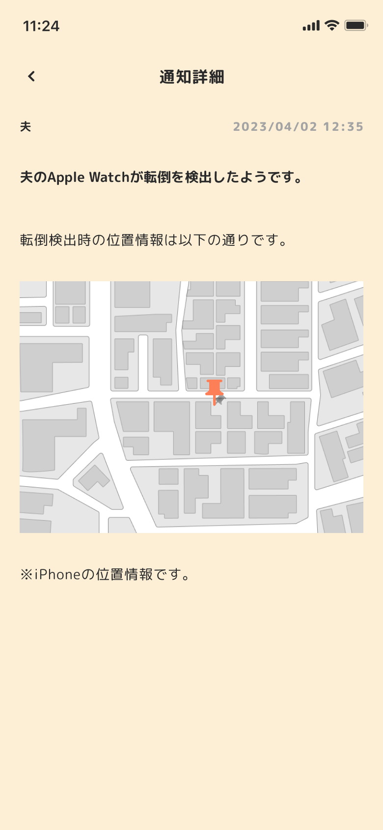 緊急通報では、身の危険を感じた時や具合が悪くなった時に「YORiSOS」からセコムへ通報するとオペレーターから電話が入り、緊急対処員による駆け付けなどを要請できます。また、「Apple Watch」が激しい転倒を検出すると必要に応じて119番に電話する「Apple Watch」の本来の機能に加えて、連携して起動する「YORiSOS」からセコムに通報してサポートを受けることが可能です。