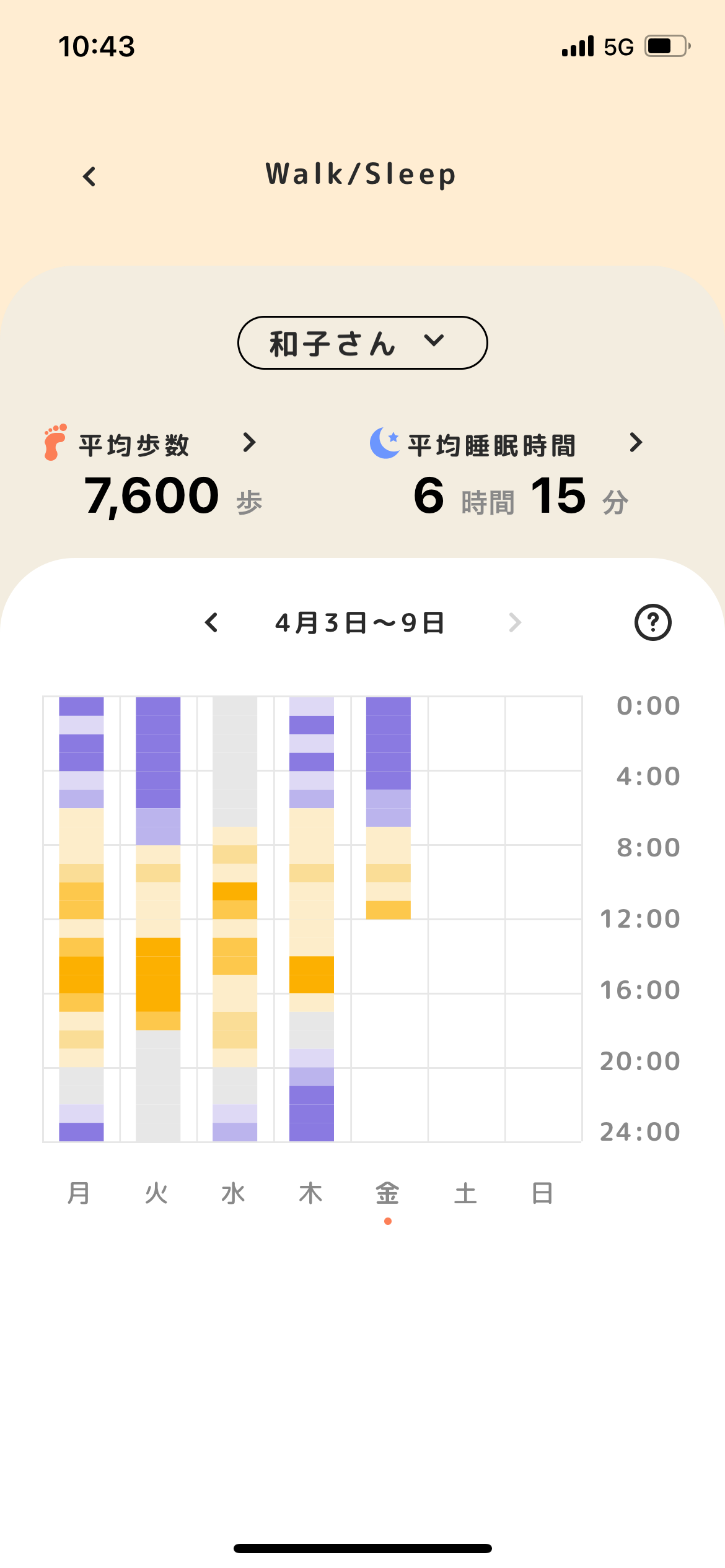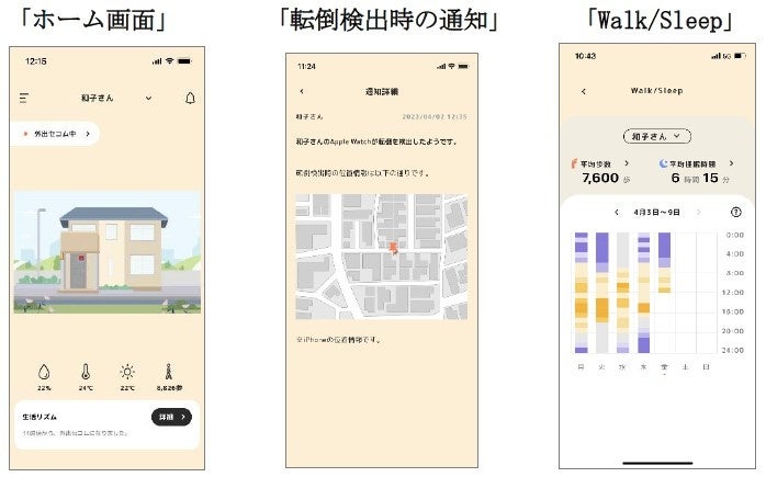 「YORiSOS」を利用する親御さんの通報ボタンの利用状況や、歩数、睡眠時間、位置情報は、ご家族側の「いつでもみまもり」アプリ※で確認することができ、よりきめ細やかな見守りを実現します。