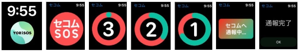 「Apple Watch」による操作手順と画面遷移(「iPhone」からも通報できます)