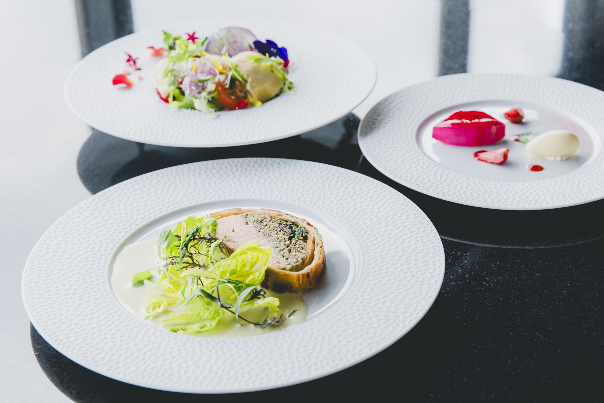 プランにはランチ、ディナー、アフタヌーンティーがそれぞれ一回ずつ含まれており、3回の宿泊でのチェックイン日もしくはチェックアウト日どちらかのお好きなタイミングでメニューをチョイス可能。例えば、5月の宿泊時にはアフタヌーンティー、7月の宿泊時にはディナー、10月の宿泊時にはランチと、3回の宿泊でそれぞれ違ったフォションホテル京都の美食をご体験いただけます。