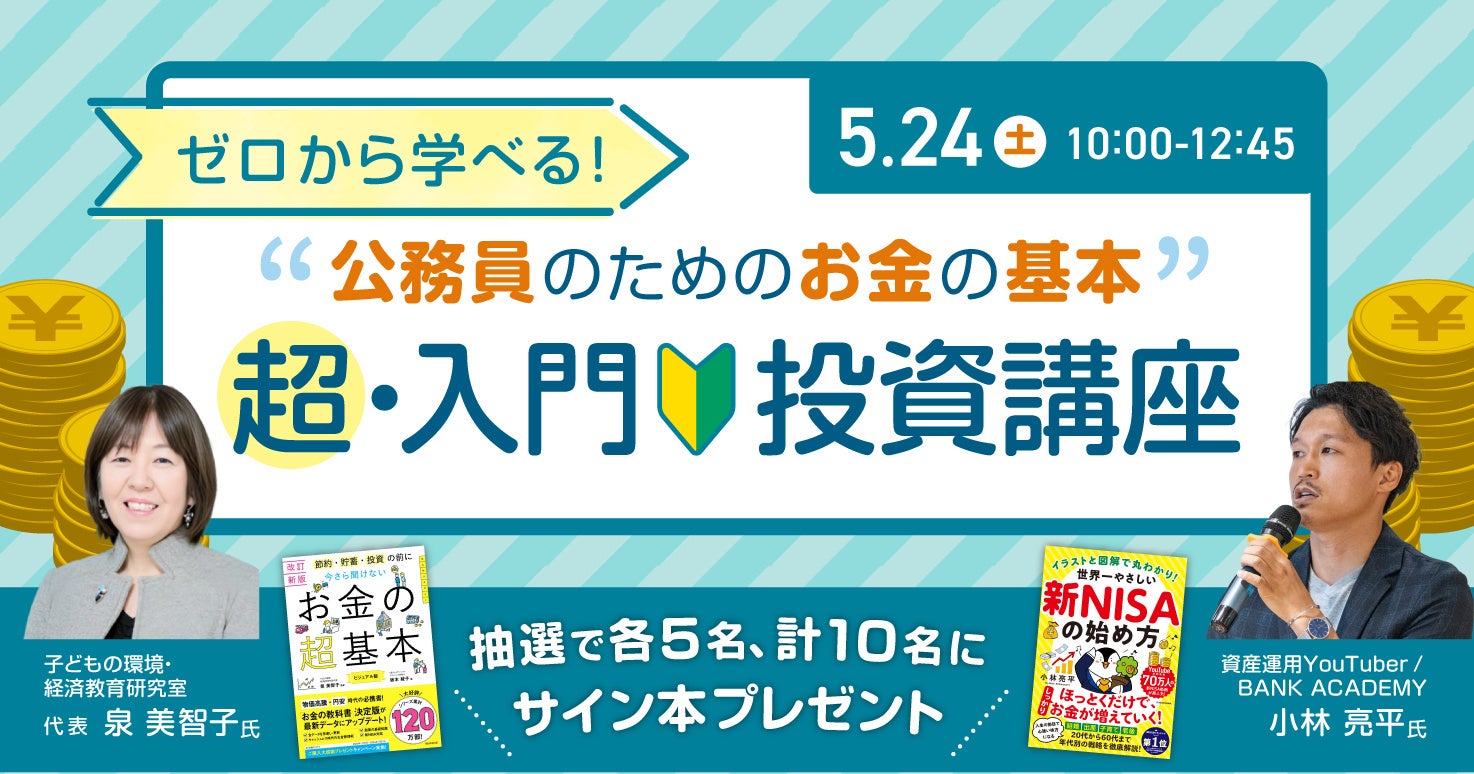 ココザス株式会社(以下、当社)の代表取締役CEO安藤義人が、2025年5月24日(土)にオンラインで開催される「ゼロから学べる!公務員のためのお金の基本 超・入門投資講座」に講師として登壇いたします。