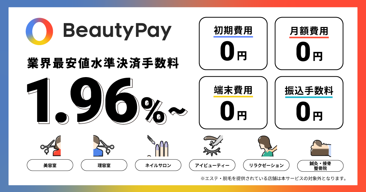 決済手数料を業界最安値水準の1.96%〜で提供、美容業界のキャッシュレス決済導入負担を“ゼロ”に
