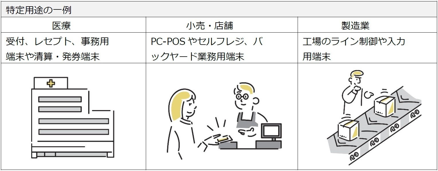 「Windows 11/10 IoT Enterprise LTSC」とは、受付端末や生産ライン制御など、特定用途端末向けのOSです。固定使用目的のデバイスやユースケース向けに設計されており、サポート期限が10年間と長期間に設定されているため、特定用途に特化した構成で一度運用を始めてしまえば、その後、長期間同様の構成で使い続けることができます。