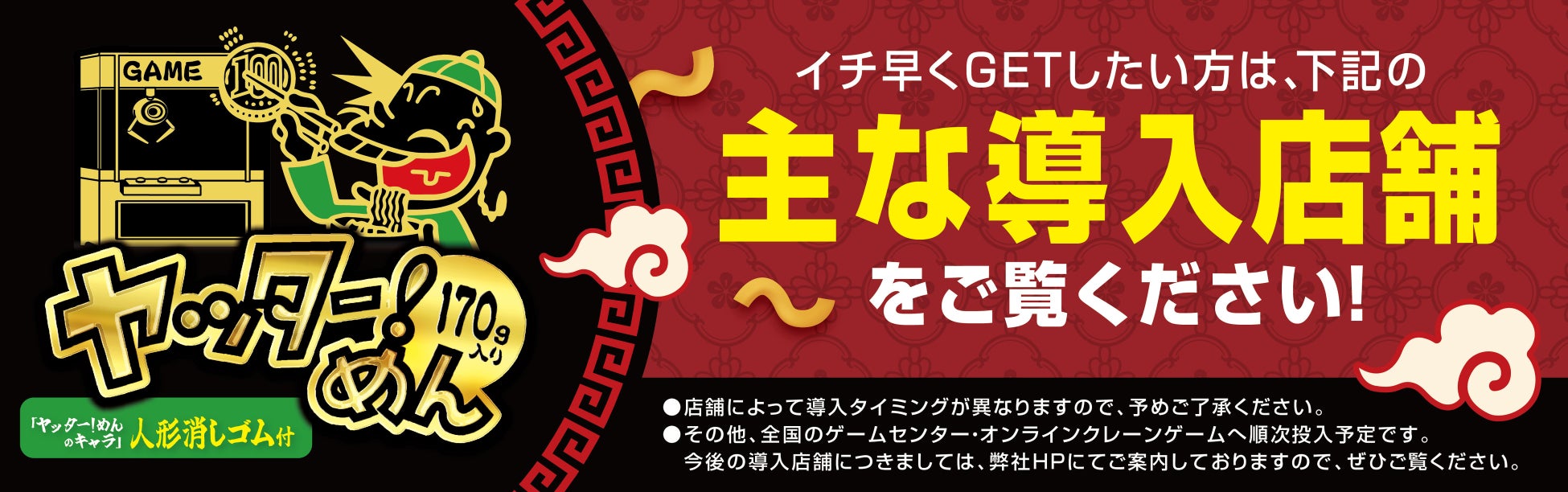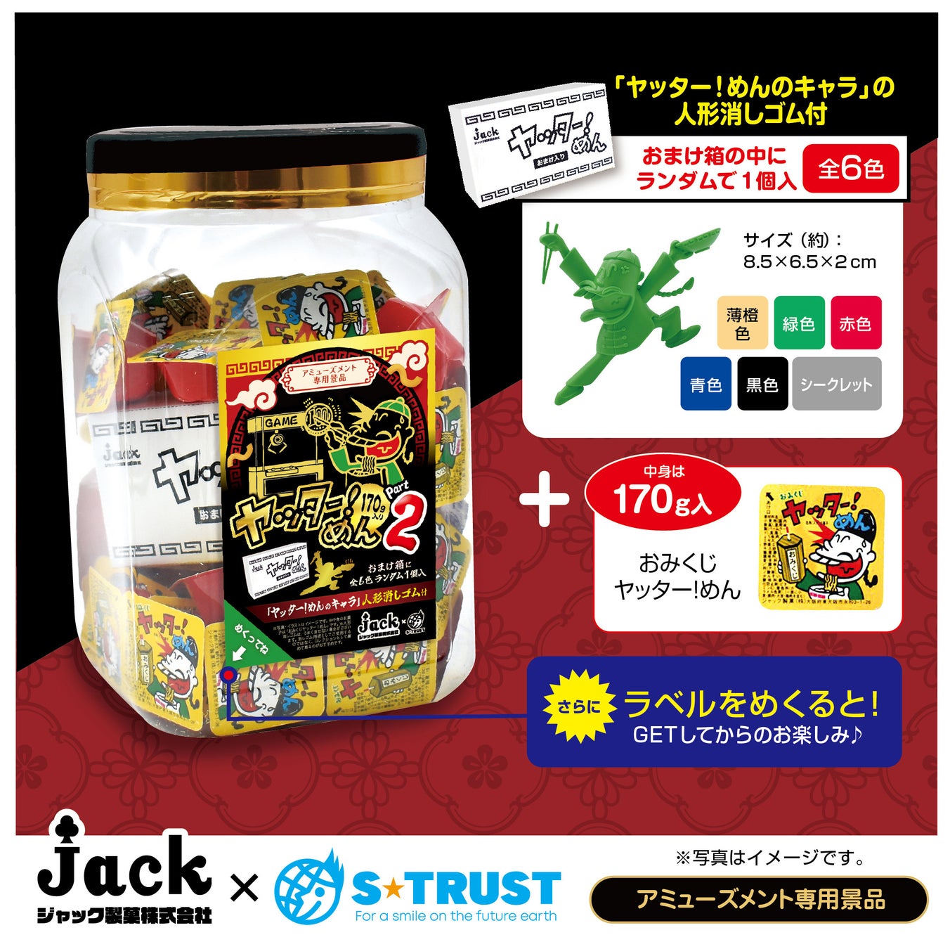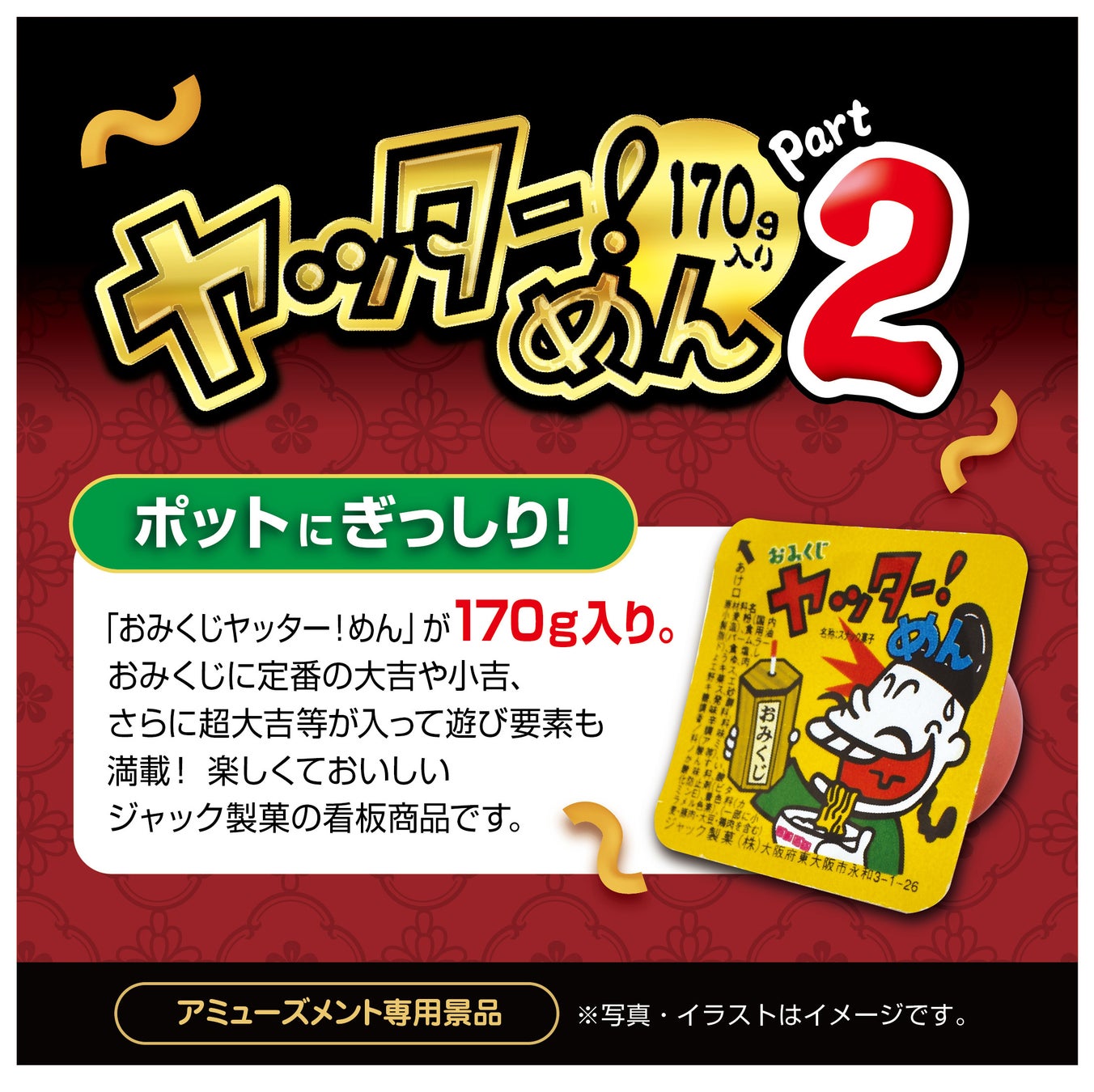 ※1:アミューズメント限定『ヤッター!めん角ポットPart2(人形消しゴム付)』は金券当たりくじはついておりませんので、ご注意ください。