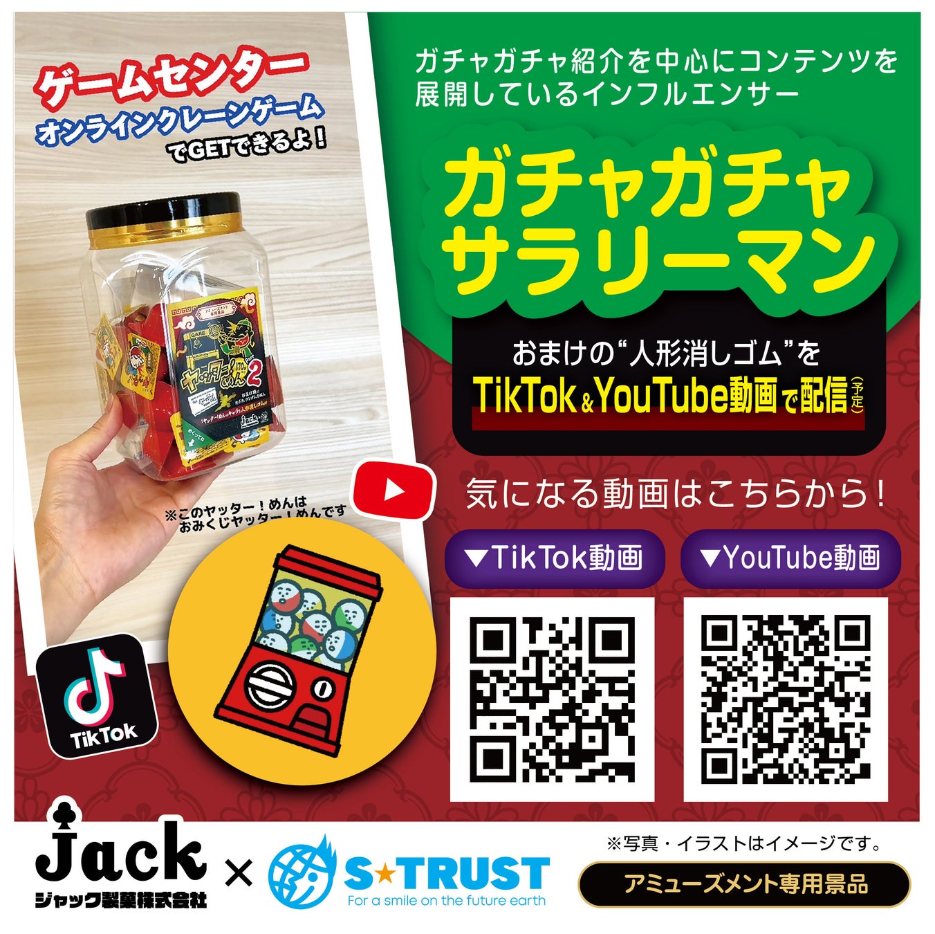 あのヤッター!めんのキャラクターの人形消しゴムをインフルエンサーの「ガチャガチャサラリーマン」がTikTok&YouTube動画でご紹介♪