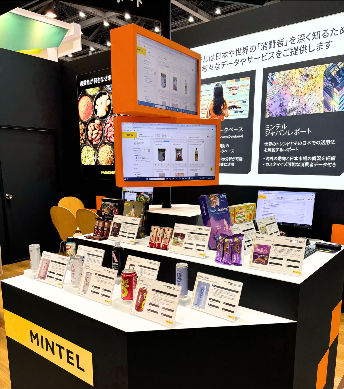ブースでは、講演者のミーガンが本展示会のためにピックアップした「世界の機能性食品・飲料」を展示しました。ご興味のある方は、ぜひミンテルジャパンまでお問い合わせください。
