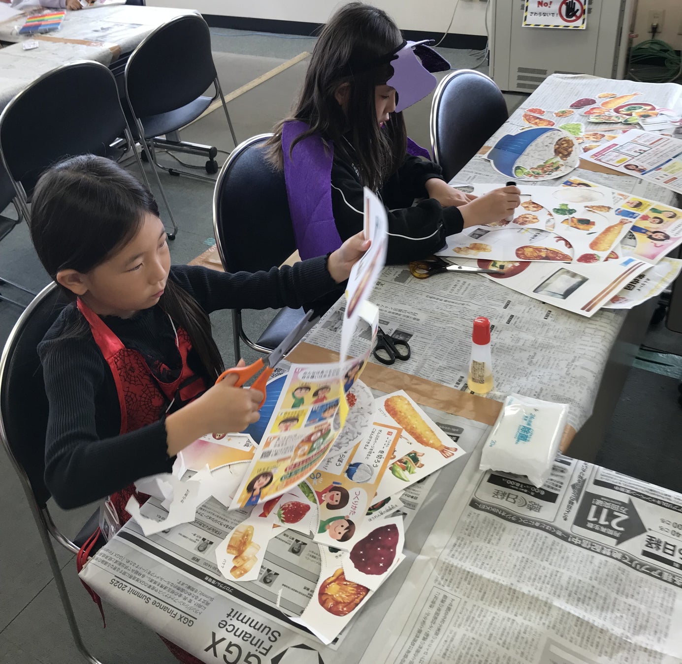 当社の商品である、「くるっと工作ブック『食育』」を使用し、食育体験を実施。ブックに載っている食材の絵(トマトや納豆、ハンバーグ等)をはさみで切り取り、ご飯の絵の上に貼り付けて、自分の好きなおかずでご飯を作り、最後に写真を撮って栄養バランスを判定してみました。「バランスよく考えられてるね!」という声や、点数があまりよくなく、栄養バランスについて親子で考え直すきっかけになったり等、食育について学ぶ機会となりました。