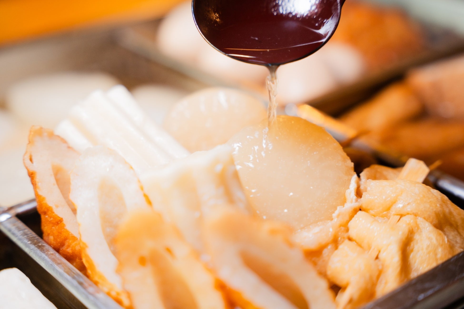 自慢の出汁を使用したあったかおでん。これからの寒い季節には欠かせません。出汁のうまみがしっかりとしみこみお酒のつまみにもぴったり。今しか飲めない日本酒とご一緒にお楽しみください。