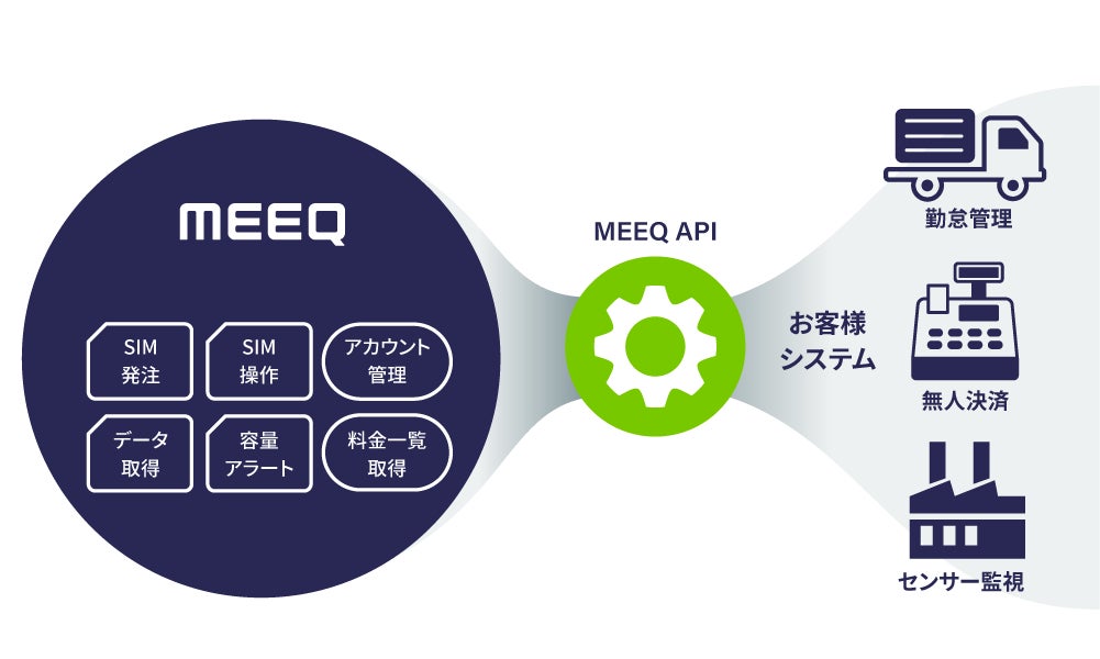 MEEQ APIは、回線の発注やデータチャージ・利用停止などの操作、データ利用量や利用料金などの情報取得が可能になるWeb APIです。