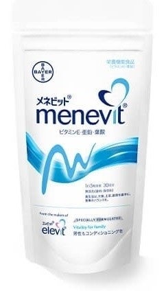 「メネビット®」は、プレナタル**サプリメント「エレビット®」から生まれた男性用サプリメントです。抗酸化作用を持つ栄養素として代表的なビタミンEや、コンディショニングに大切な細胞の代謝をサポートするミネラルの亜鉛など、男性の妊活を支える9つの栄養素をバランスよく配合したマルチビタミンサプリメントとなっています。女性は「エレビット®」、男性は「メネビット®」と、夫婦で一緒に飲む“ペアサプリメント”として誕生しました。