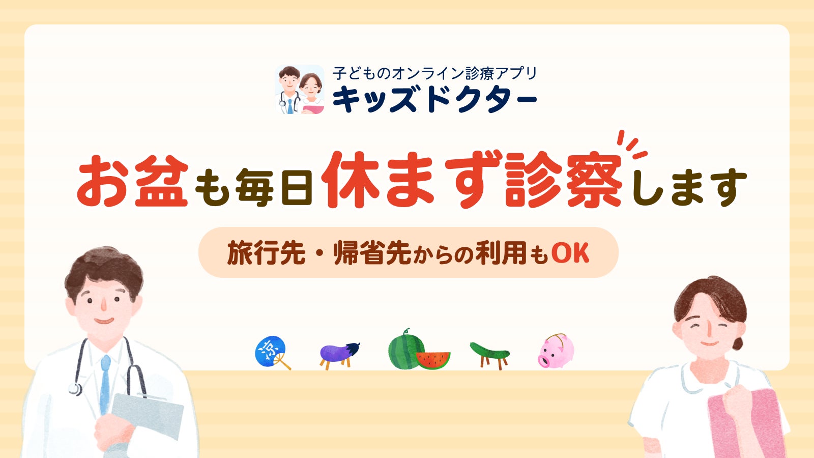 子どものオンライン診療アプリ「キッズドクター」はお盆期間も毎日診察!帰省・旅行先からもご利用可能