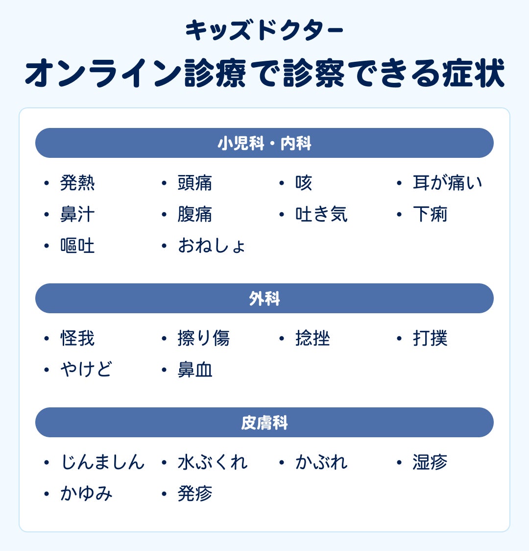 キッズドクター(https://kids-doctor.jp/)は、子どもの健康や病気についてご不安を抱える保護者の方に「医師とつながれる安心」を届けるために生まれた、子どものオンライン診療アプリです。早朝や夜間、休日でも、自宅からスマートフォンで医師の診察を受けることができます。オンライン診療の他に、看護師によるチャット健康相談もご利用いただけます。