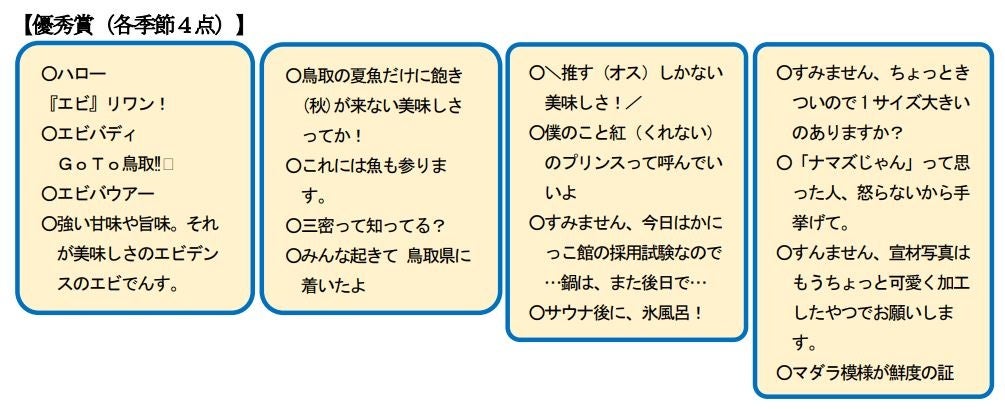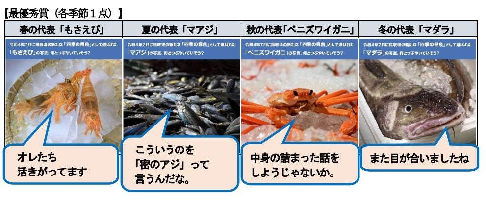 選考基準:鳥取県の「四季の県魚」としてふさわしいものか、ユーモラスな投稿であるか など