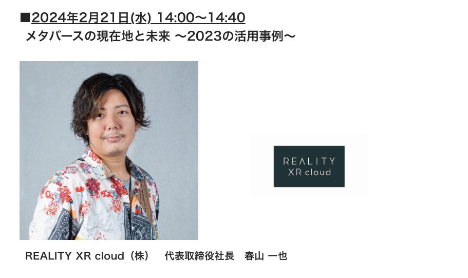 日本最大の来場者数を誇るREALITY Worldsを持つREALITY XR cloudが当社の事例についてお話しする予定です。