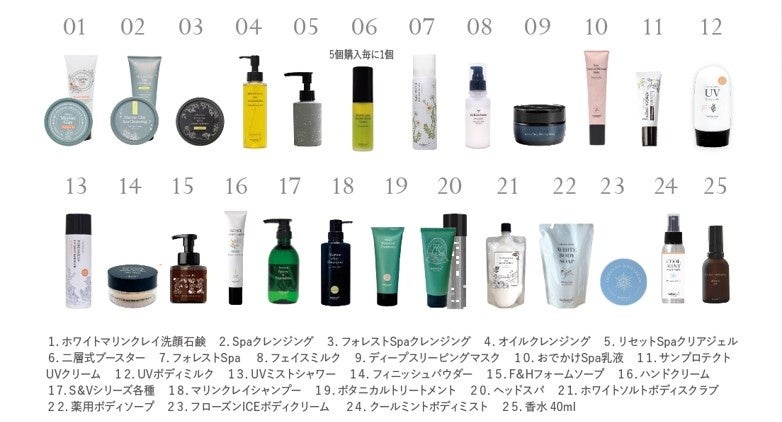 ・対象商品: ホワイトマリンクレイ洗顔石鹸、Spaクレンジング、フォレストSpaクレンジングバター、オイルクレンジング、リセットSpaクリアジェル、二層式ブースターセラム Garden、淡雫スキンケアミストローションフォレストSpa、フェイスミルク、ディープスリーピングマスク、おでかけSpa乳液、サンプロテクトUVクリーム、UVボディミルク、UVミストシャワー、フィニッシュパウダー、F&Hフォームソープ、ハンドクリーム、S&Vシリーズ各種、マリンクレイシャンプー、ボタニカルトリートメント、ヘッドスパ、ホワイトソルトボディスクラブ、薬用ホワイトボディソープ、フローズンICEボディクリーム、クールミントボディミスト、香水 40ml