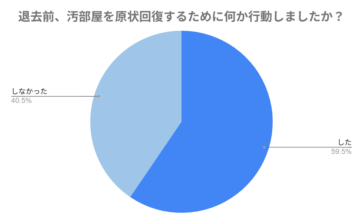 「退去前、汚部屋を原状回復するために何か行動しましたか?」の設問では、約6割の方が「した」と回答しました。