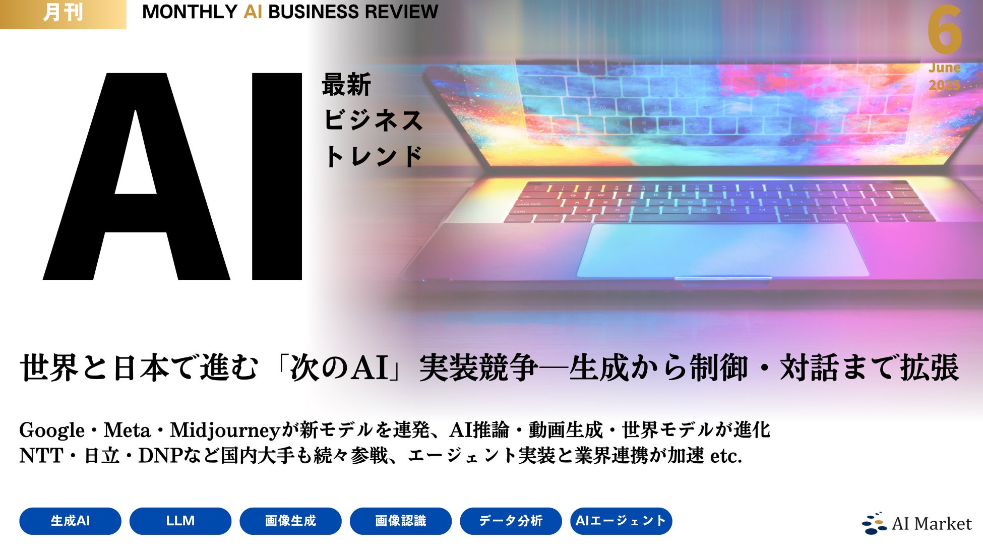 AI Market(https://ai-market.jp)は、2025年6月の最新AIビジネス情報をまとめたレポート『MONTHLY AI BUSINESS REVIEW』を無料公開しました。