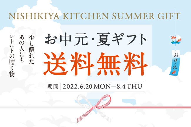レトルト食品メーカー株式会社にしき食品(本社:宮城県岩沼市、代表取締役:菊池 洋)の自社ブランドNISHIKIYA KITCHEN(ニシキヤキッチン)は、2022年6月20日(月)より、直営店・公式オンラインショップにて夏ギフトの送料無料キャンペーンを実施いたします。