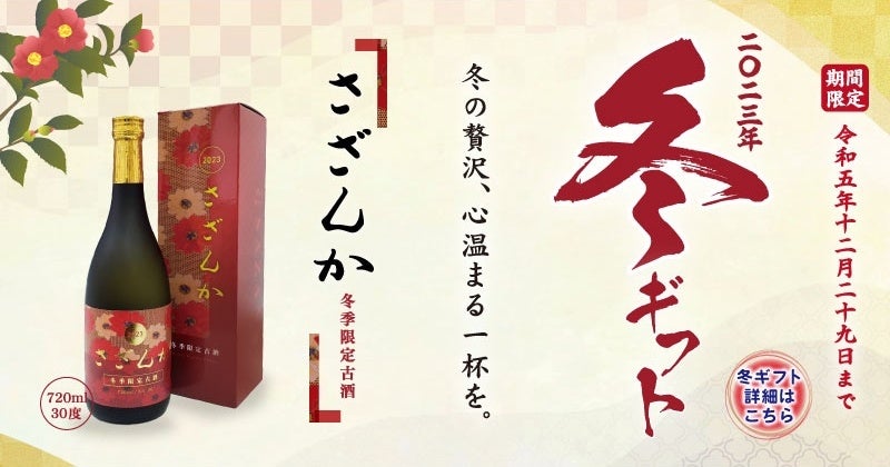 <【2023年 冬季限定古酒】さざんか 720ml ¥2,500(税込) >