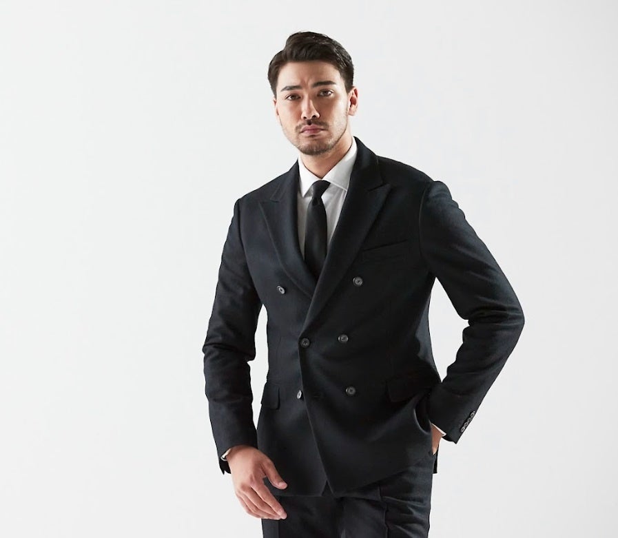 重厚感とクラシカルな雰囲気が漂う6ボダンダブルブレストジャケット。