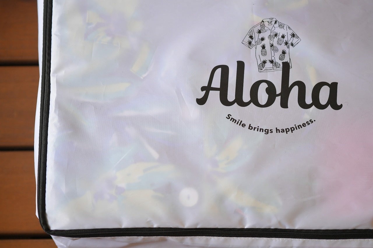 【Aloha】は3つの中で一番大きいサイズ。ボトムスやワンピースなどの大物の衣類はもちろん、普通にたたんだアロハシャツがそのまま入るサイズなのでしわになりにくく便利。ちなみに機内持ち込み用サイズのスーツケースでは片側にすっぽり収まるサイズ感です。※個体差はあります。