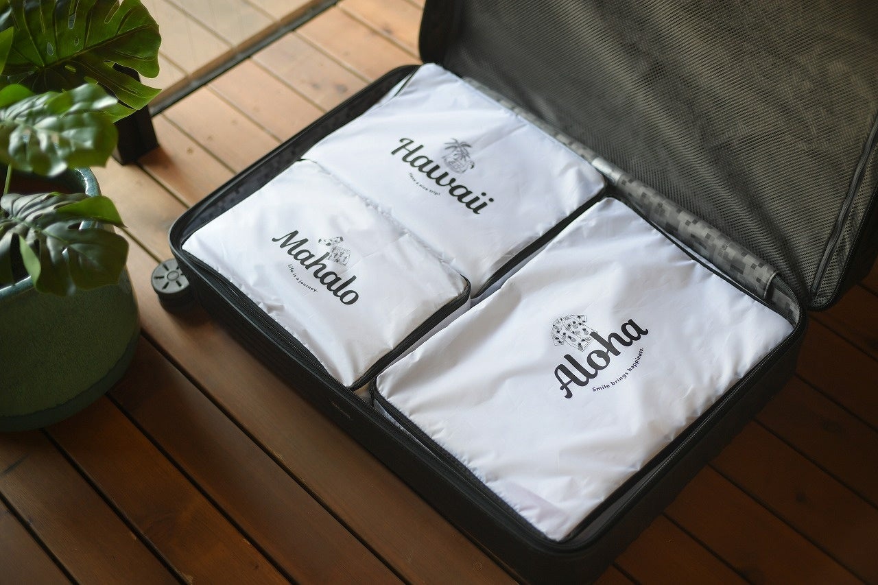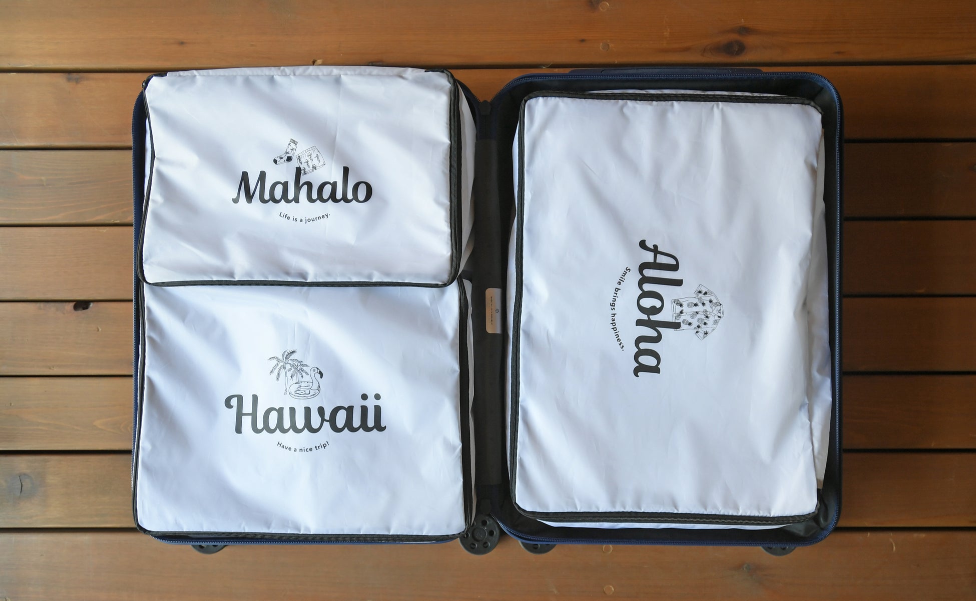 ハワイ旅に持っていく荷物は、Tシャツやパンツ、下着類の他に、おしゃれ着としてワンピースやアロハシャツ、スイムウエアやランニングウエアなど色々あります。パッキング時に用途によって収納すれば、ハワイに着いてからの荷ほどきもラクラク!ありそうでなかった、ハワイ語があしらわれたパッキングポーチ。ハワイを愛する方々に、旅に出る前からハワイ気分で準備を楽しんでもらえたら嬉しいです。