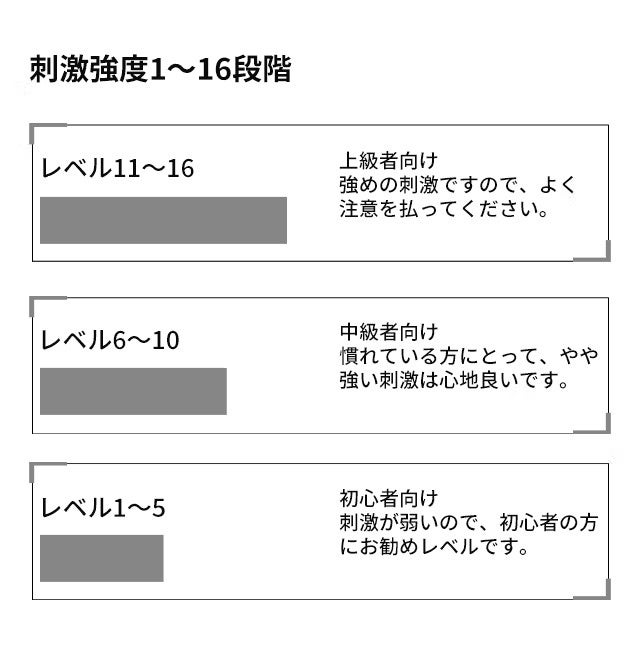 *初めてお使いの際はレベル1の強さからご使用いただき、徐々にレベルを上げていくのはお勧めです。