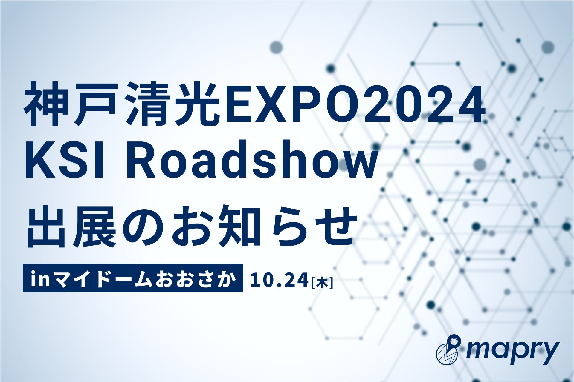 地理空間情報アプリプラットフォームサービス「mapry」を提供する株式会社マプリィ(本社:兵庫県丹波市、代表取締役:山口圭司、以下マプリィ)は、最新の測量機器やソフトウェアが集結する展示会「神戸清光EXPO2024 KSI Roadshow」(2024年10月24日(木)、会場:マイドームおおさか)に出展します。