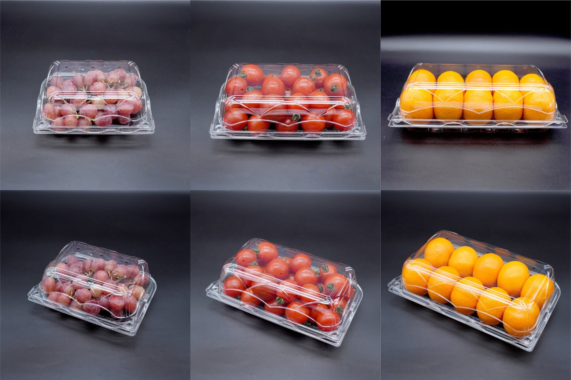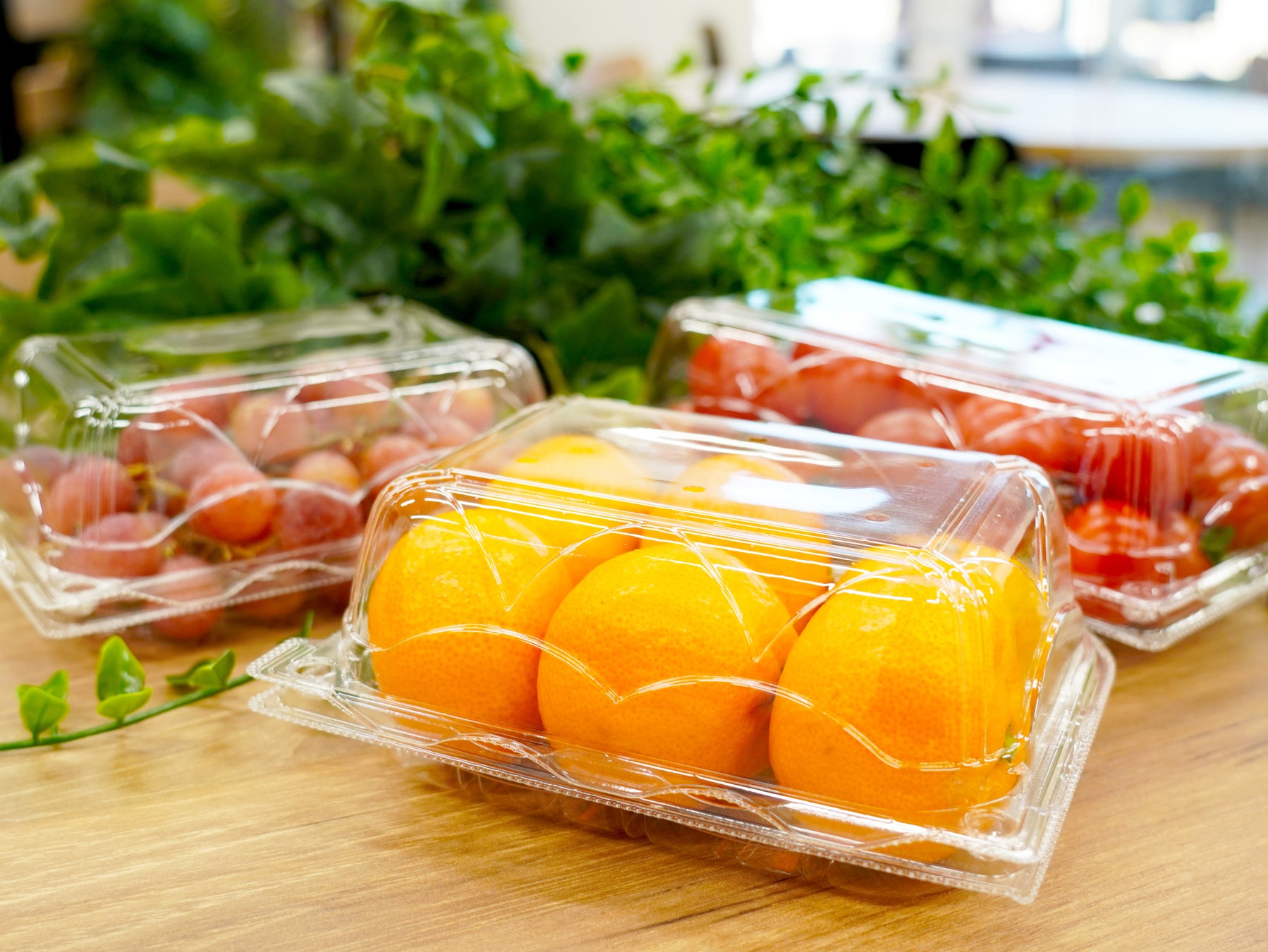 青果物用途ではないフードパックには、青果物が発する水分やガスを通気する通気口が開いておらず青果物が傷みやすくなってしまうため、汎用的に使える青果物用容器の要望が多く寄せられていました。また、フルーツケースからの置き換えでは段積みが可能となり品出し回数を軽減し、省人化することが出来ます。
