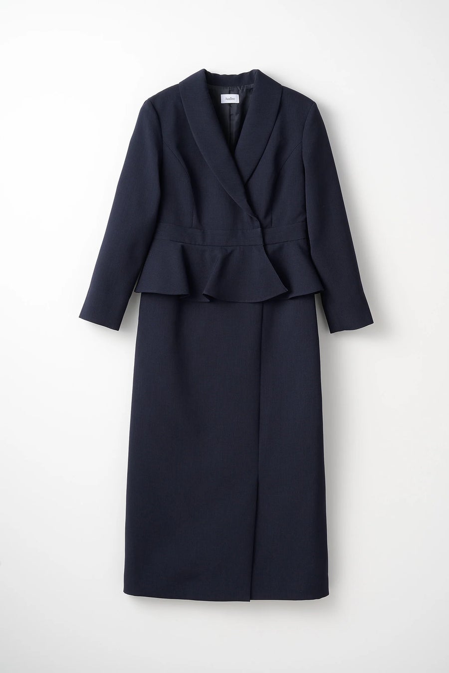 ハレノヒの一着として即完したネイビードレスが再販。仕事の打ち合わせや食事会など、幅広い"ここぞというとき"に。