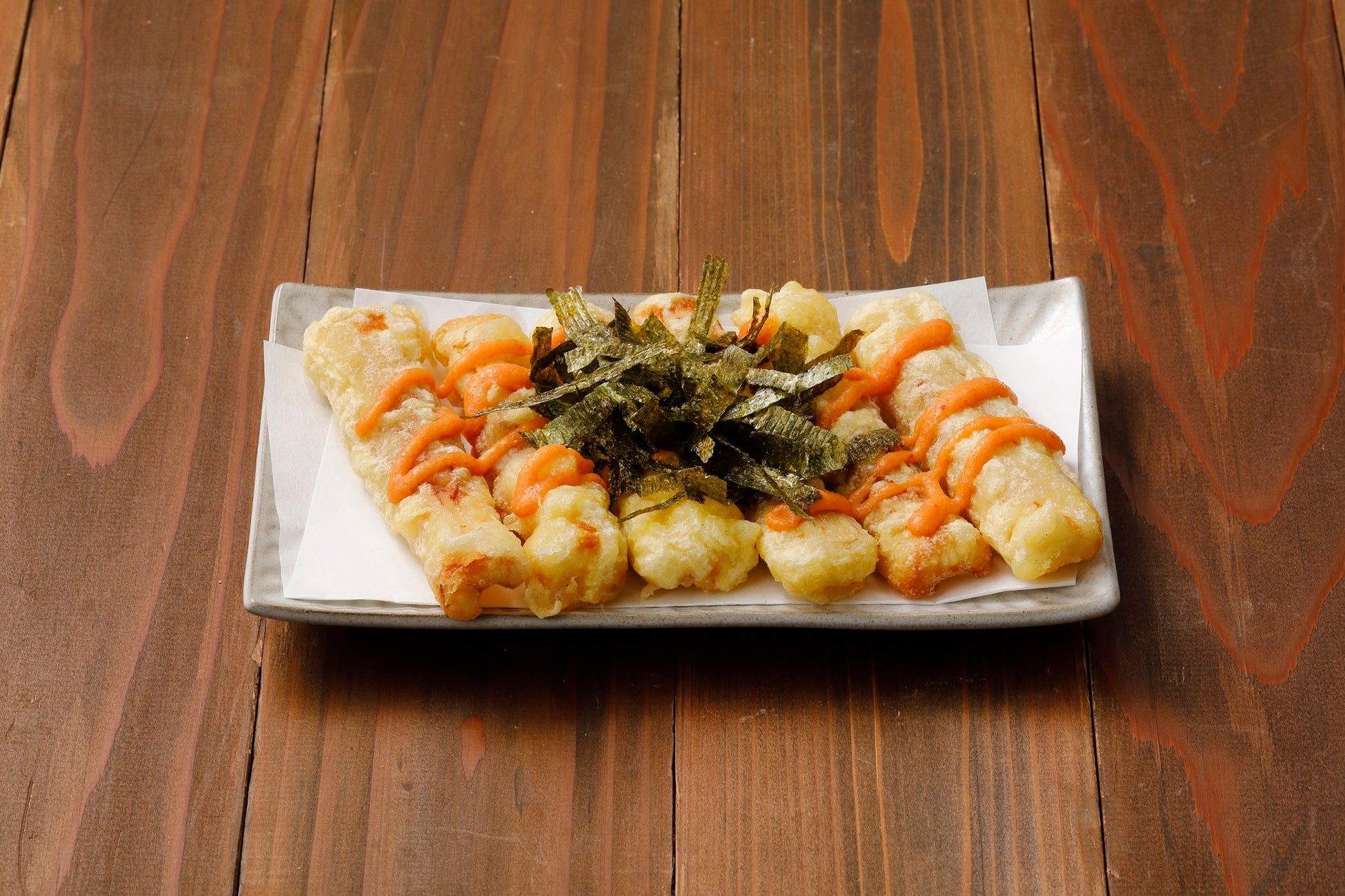 3回目の復刻となる人気メニュー。令和版は北海道産たらこの明太マヨソースと風味豊かなのりをトッピング。明太マヨソースがちくわと相性抜群です。