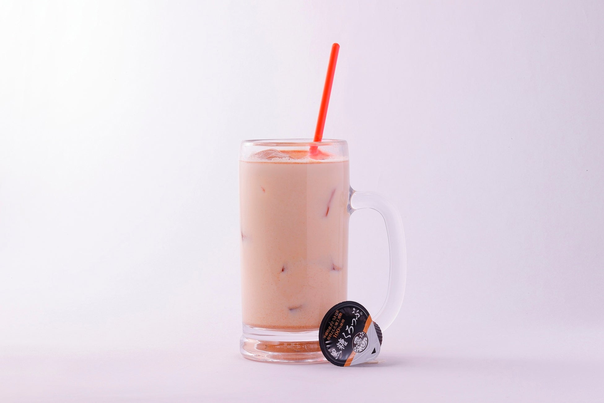 ふわっととろける食感が人気のShinsei「とろけるきなこ」を使用したラテ。ごまパウダー入りのきなこに、黒糖のコクと麦芽糖・オリゴ糖が入った自然のやさしい甘みが牛乳とマッチ。沖縄県産の加工黒糖を使用した「黒蜜くろっぷ」をかけて味の変化も楽しめます。