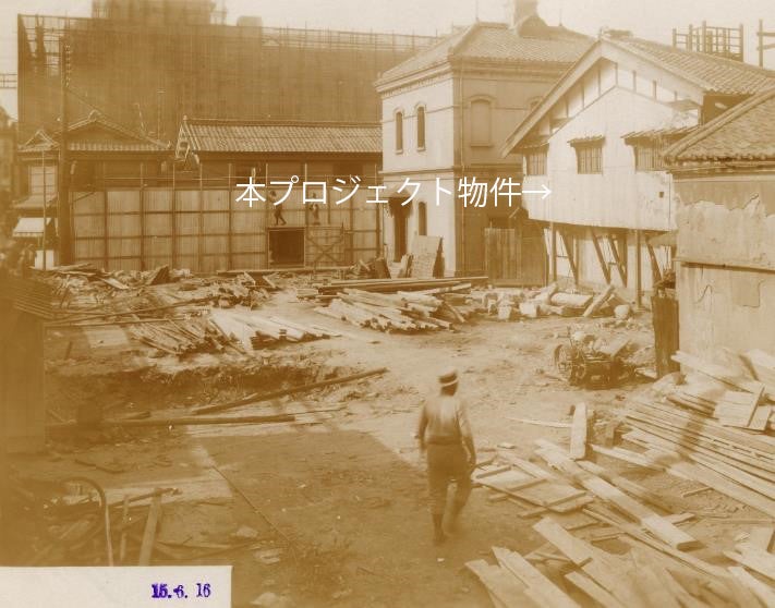 本プロジェクト物件は、幕末に唐小間物商(貿易商)として財を成した芝川又右衛門の本邸の一部で、明治、大正、昭和時代の改修工事を経て今に受け継がれた建物です。昭和2年に芝川本邸の一角に芝川ビルが建設され、昭和4年にその一部を利用して女子教育のための学校「芝蘭社家政学園」が開校した折には、本物件の大規模改修工事が行われ、洋裁室(ミシン室)として使用されました。