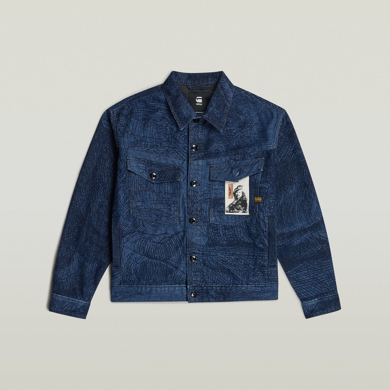レンブラントは画家として草分け的存在だっただけでなく、卓越したエッチング技術の持ち主でした。称賛される彼の数多くの展⽰作品にも⾒て取れる通り、彼は実に多様な構成やテクニックを試しました。G-STARはこれにインスピレーションを受け、新コレクションの創作と展⽰に⾄りました。 レンブラントは通常の紙のみならず、⽺⽪紙や和紙といった他の素材も⽤いて、多様なエッチングを試みました。ここからヒントを得たG-STARは、実験熱⼼だった彼の⾰新的な⼿法をより現代的に再現することにしました。デザイナーチームは1963 年のレンブラントの⾃画像を⼟台に、最新のレーザー技術を⽤いて、どのタイプの デニムやウォッシュ、コーティングが最⾼の仕上がりを⽣むかを研究し、時にはAI も利⽤しながら、作品にも細かな調整を加えました。今回の展⽰では、レンブラントの版画の⾒どころをいくつか紹介しながら、最新のデニムコレクション誕⽣に⾄ るまでの研究について知ることができます。