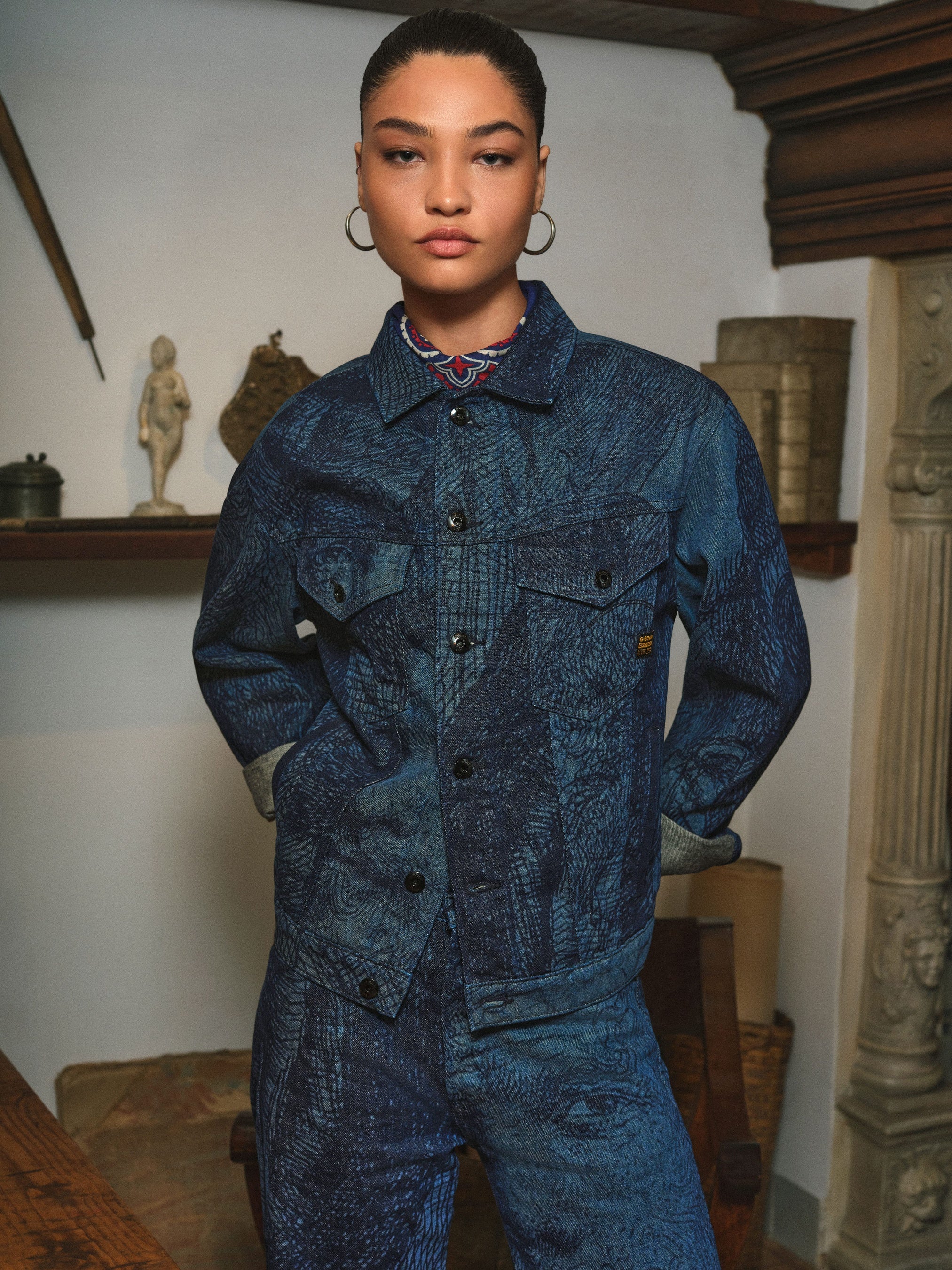 G-STARは、本キャンペーンの舞台に唯⼀無⼆なセッティングを選びました。かつて レンブラント本⼈が仕事をし⽣活をしていた、歴史あるレンブラントの家美術館内のさまざまな空間を利⽤しています。