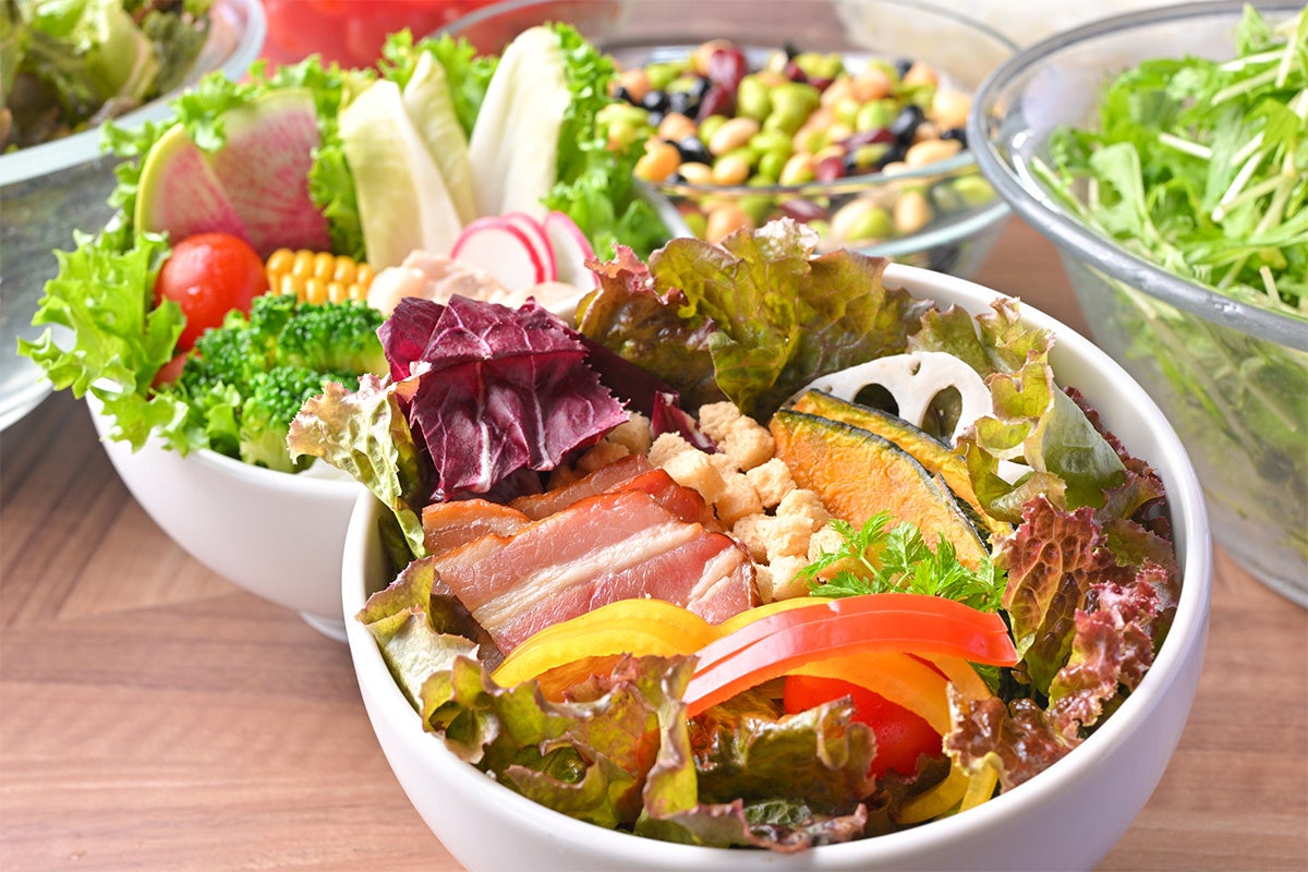 サラダコーナーを拡充し、色とりどりの野菜に加え、チキン・サーモン・エビなどを使用した“おかずになるサラダ”が新登場。旬の素材を使ったサラダで、秋らしい彩りと食べ応えをお楽しみいただけます。