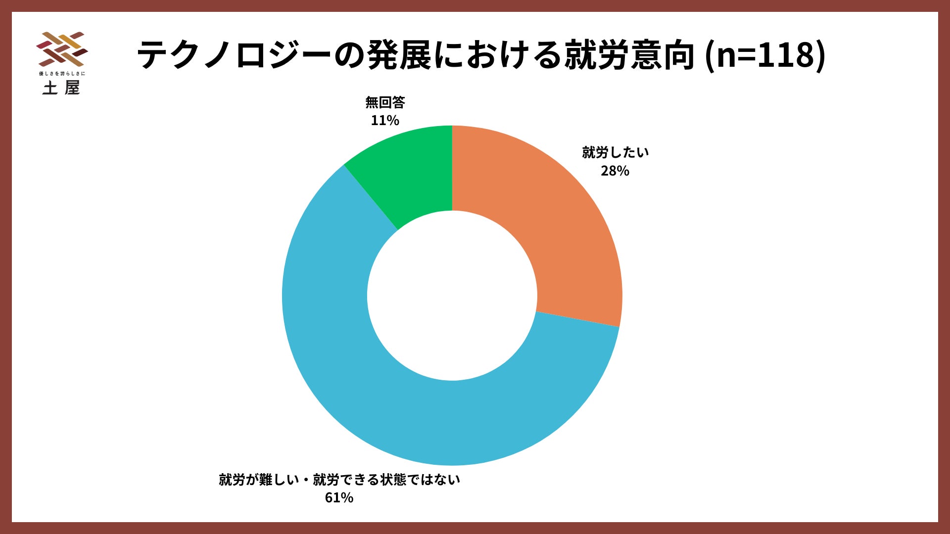 現在なんらかの理由で就労をしていない重度障害者の約3割(28%)が、テクノロジーの発展があれば「就労したい」と回答。