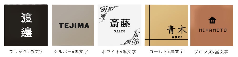 文字入れを行うプレートは「ブラックx白文字」「シルバーx黒文字」「ホワイトx黒文字」「ゴールドx黒文字」「ブロンズx黒文字」の5種から組み合わせを選ぶことが出来ます。